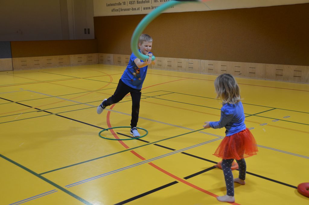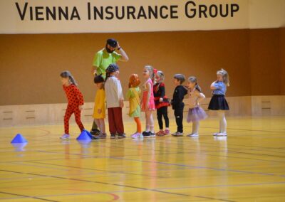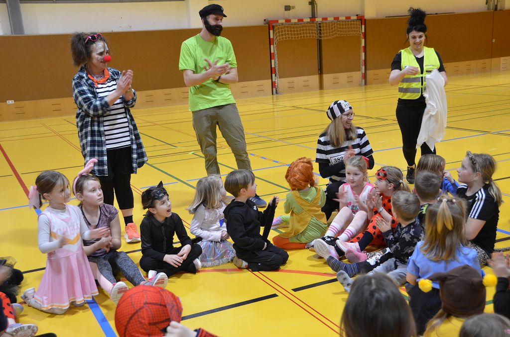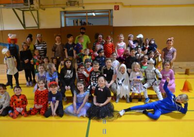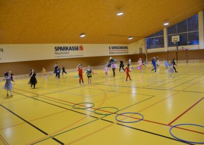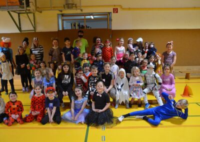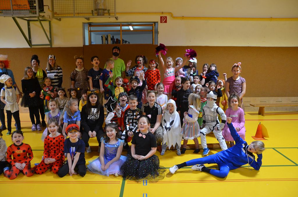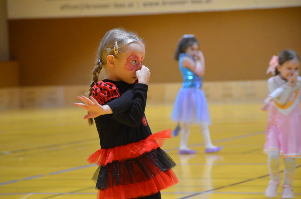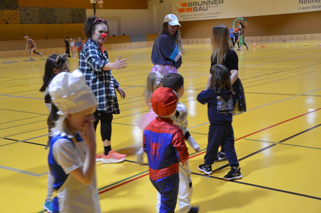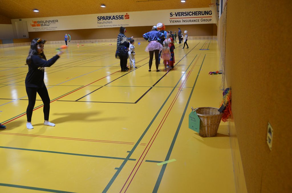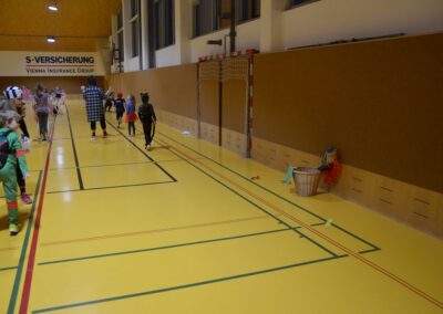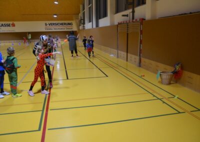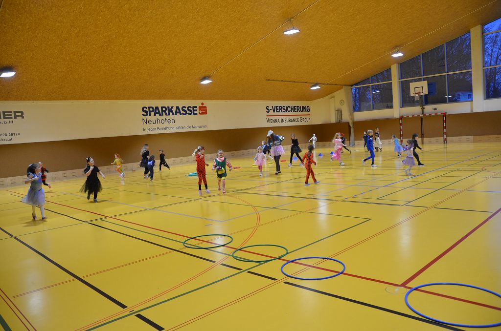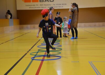 Nach einer bunten Faschingsparade besuchten die lustigen und interessanten Gestalten in kleineren Gruppen die verschiedene Stationen im „Faschingsabenteuerland“. Man durfte über den Prinzessinen- und Ritterpfad balancieren, einem Heulermonster Heuler in den Zielkorb werfen, sich in einem Krapfenstaffellauf messen, einem Drachen im Slalomlauf geschickt ausweichen und im Känguru-Sprungland seine Sprungkünste vorführen. Zum Abschluss sausten die superschnellen Faschingskinder zum Krapfenkreis,und schnappten sich ein Krapfenbild, welches gegen einen echten Faschingskrapfen eingetauscht wurde – und den haben sich alle wirklich verdient! Ihr wart toll, danke,dass ihr mit so viel Spaß dabei wart, liebe Kinder und liebes Trainingsteam!