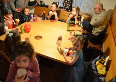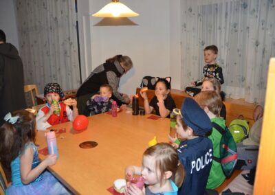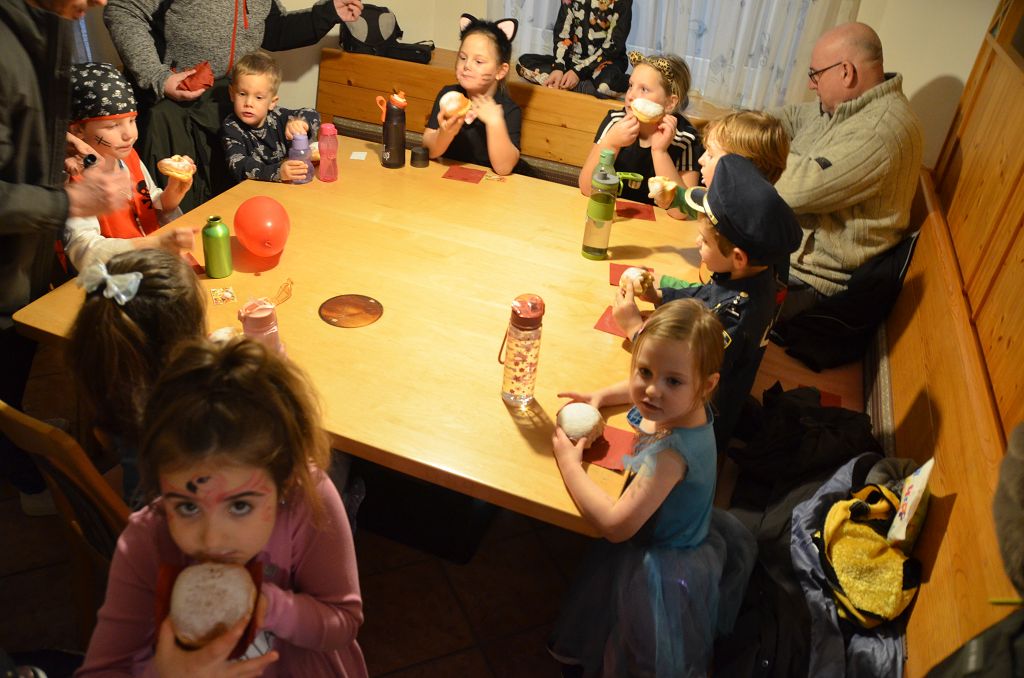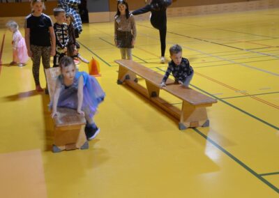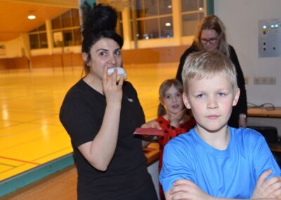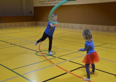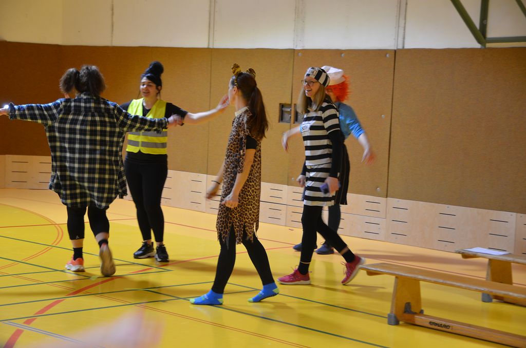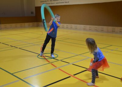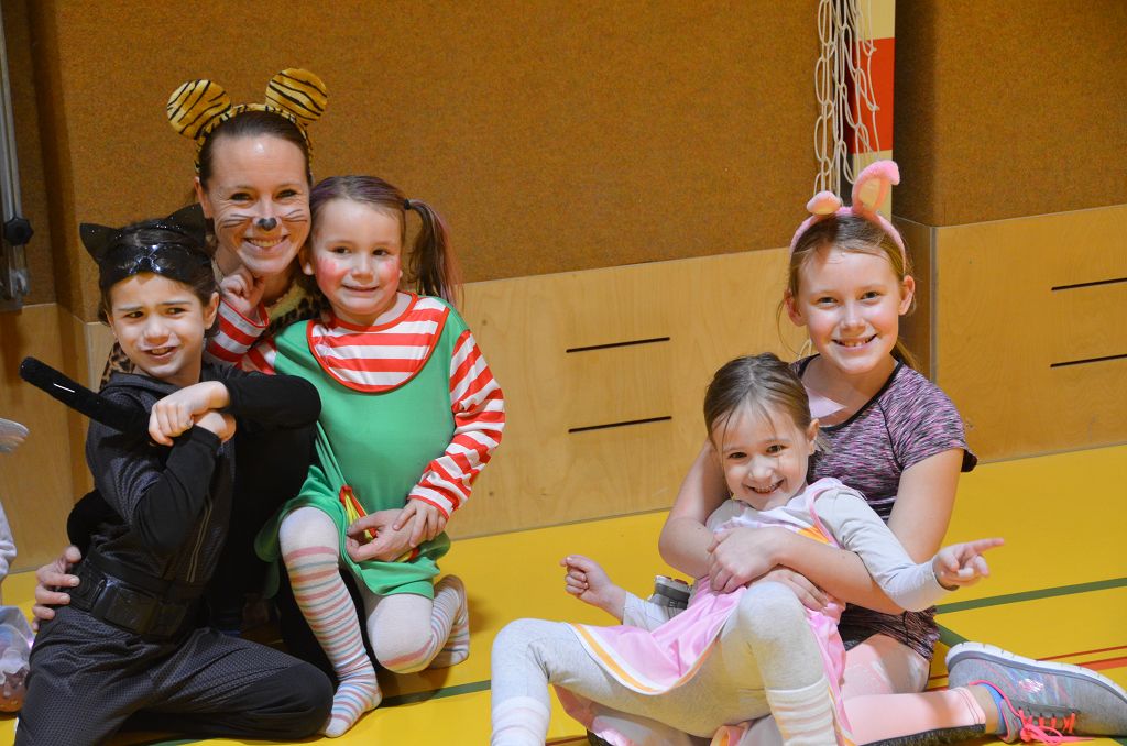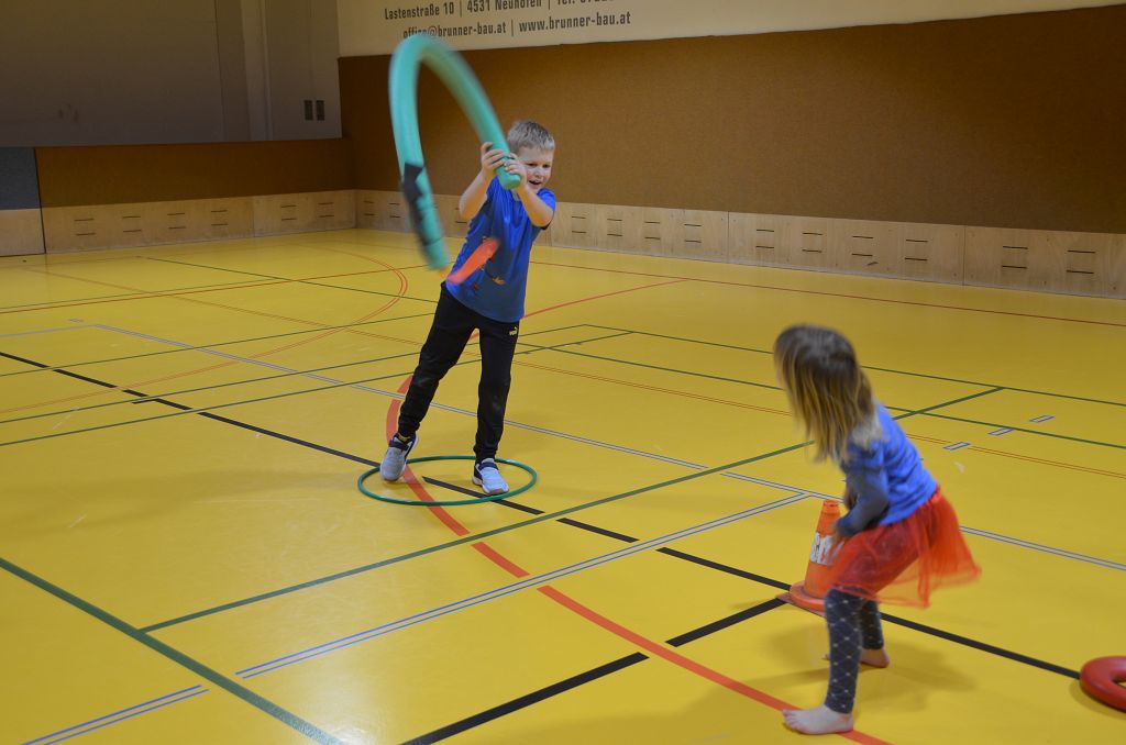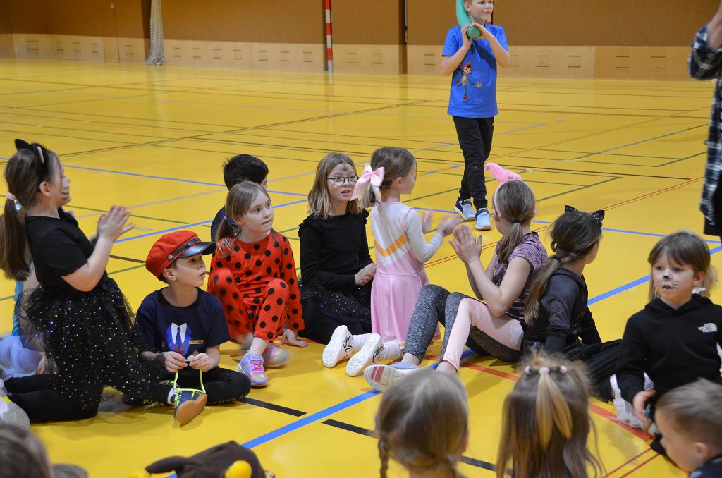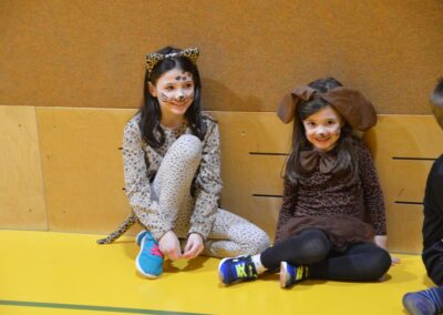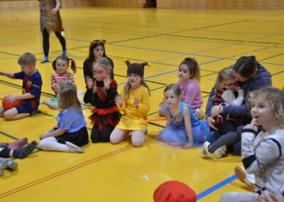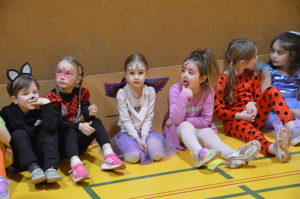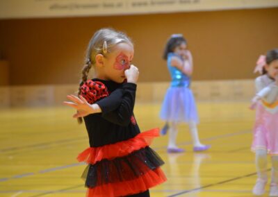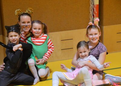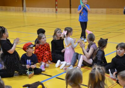Nach einer bunten Faschingsparade besuchten die lustigen und interessanten Gestalten in kleineren Gruppen die verschiedene Stationen im „Faschingsabenteuerland“. Man durfte über den Prinzessinen- und Ritterpfad balancieren, einem Heulermonster Heuler in den Zielkorb werfen, sich in einem Krapfenstaffellauf messen, einem Drachen im Slalomlauf geschickt ausweichen und im Känguru-Sprungland seine Sprungkünste vorführen. Zum Abschluss sausten die superschnellen Faschingskinder zum Krapfenkreis,und schnappten sich ein Krapfenbild, welches gegen einen echten Faschingskrapfen eingetauscht wurde – und den haben sich alle wirklich verdient! Ihr wart toll, danke,dass ihr mit so viel Spaß dabei wart, liebe Kinder und liebes Trainingsteam!