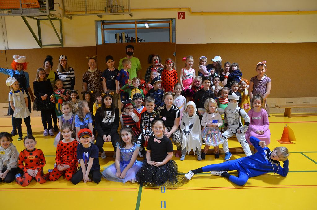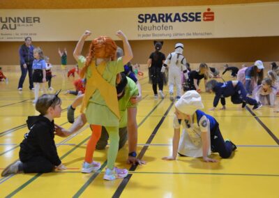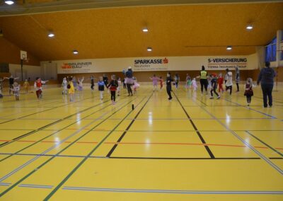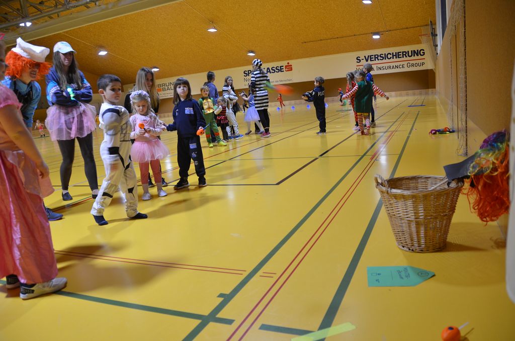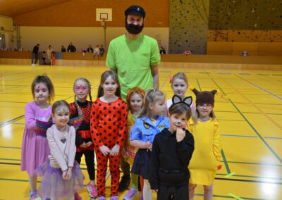 Über 40 Kinder fanden sich in originellen und kreativen Verkleidungen am Trainingsmontag vor den Semesterferien in der Ballsporthalle ein.