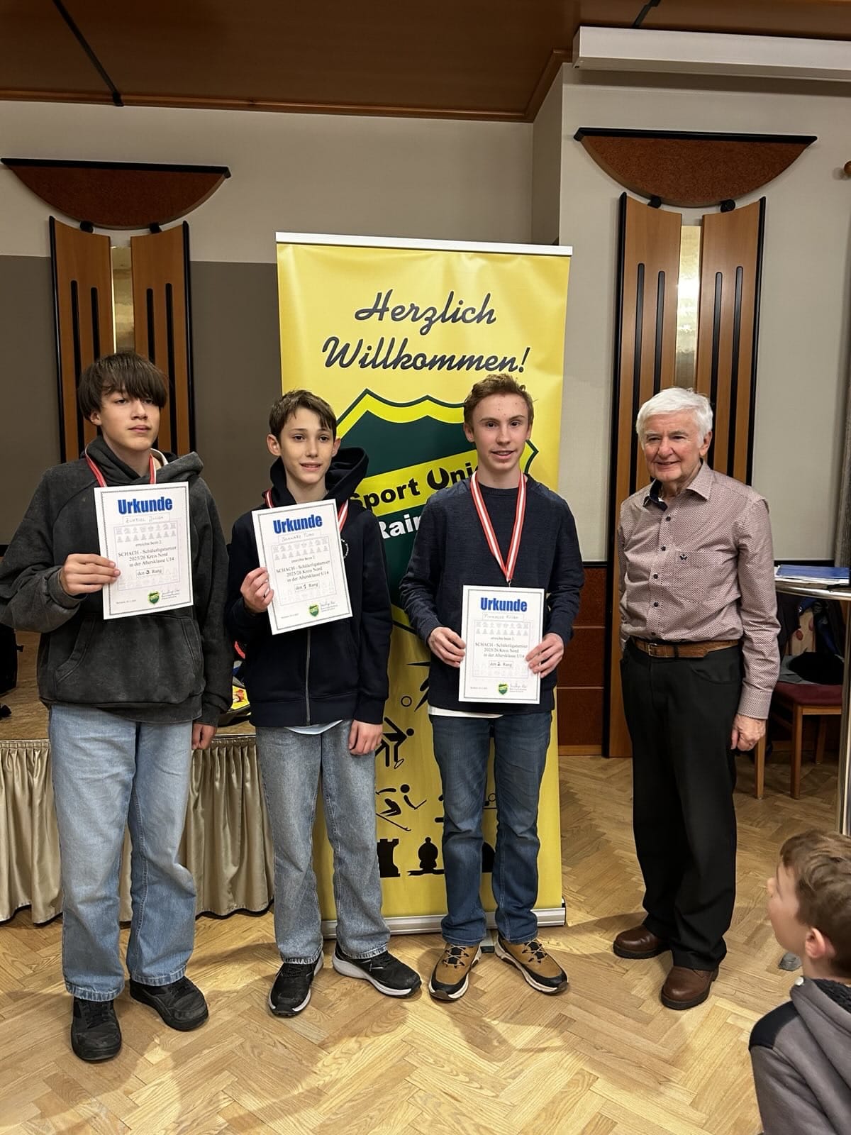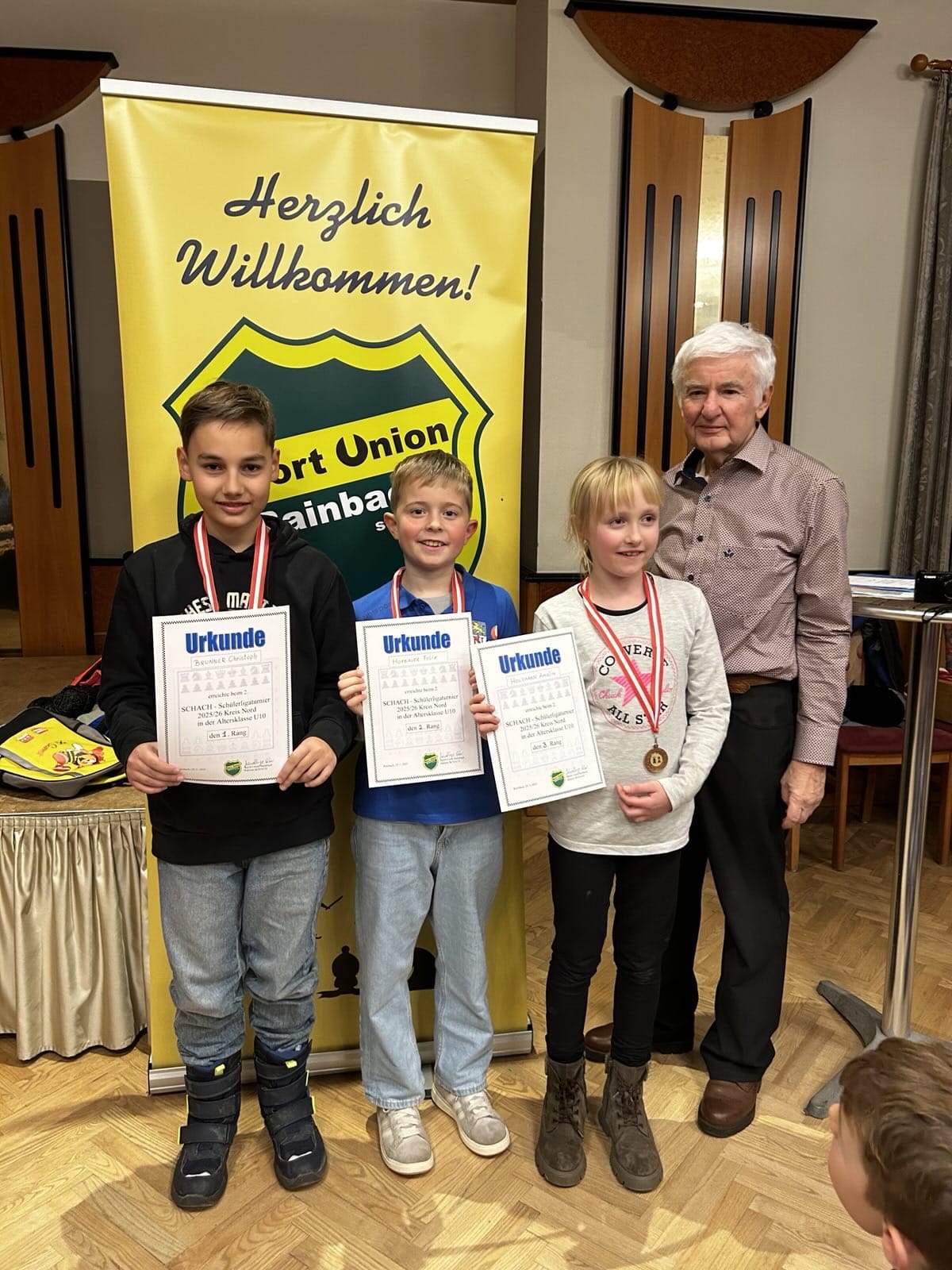 Damit hat unser Schachverein gleich mehrfach Grund zum Feiern: Gold für Christoph, Silber für Felix und Silber für Kilian. Drei Spieler, drei Medaillen, drei strahlende Gesichter – ein glänzender Auftritt unserer Nachwuchstalente.